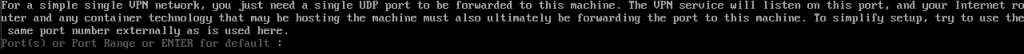 You will now be prompted to set a UDP port number for the VPN service to listen on. Either type a port number here, or press enter to select the default 51820.