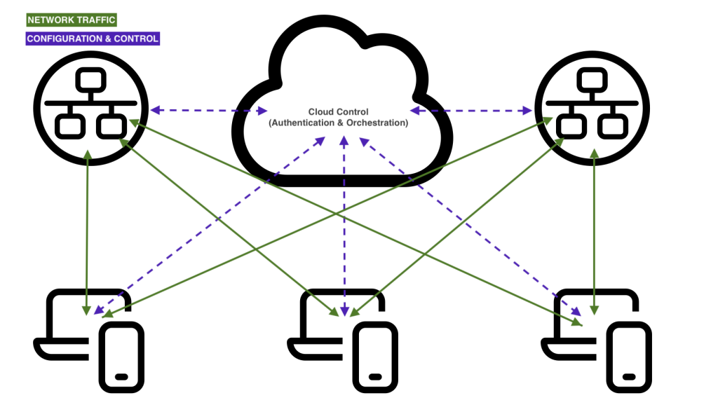 Nodal VPN separates the control plane from the data plane. The cloud service is your single pane of glass for user authentication, policy and node orchestration. The Nodal VPN client connects directly to your on-premise Nodes; data packets never traverse the Nodal VPN cloud.